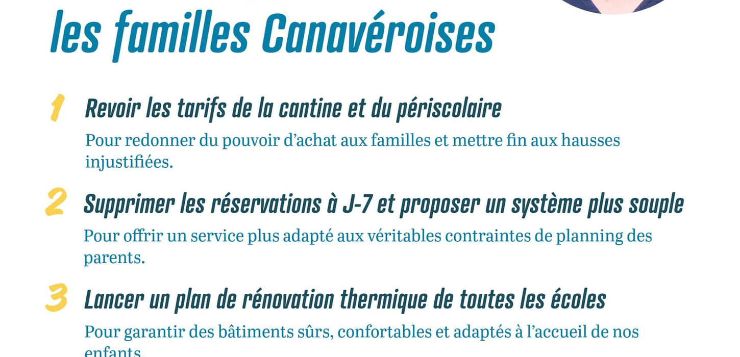 Les familles sont au cœur de la vie de notre ville. Leur quotidien dépend directement de la qualité des services municipaux liés à l’enfance : cantine, périscolaire, écoles, activités éducatives et cadre d’apprentissage. Depuis plusieurs années, ces services se sont dégradés : tarifs en forte hausse, absence de souplesse pour les réservations, écoles vieillissantes, manque d’équipements, dialogue insuffisant avec les parents et les enseignants.